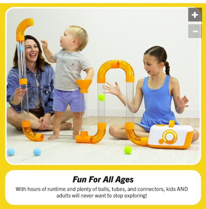 With hours of runtime and loads of balls, tubes, connectors, and accessories included, kids (and adults) will never want to stop exploring!