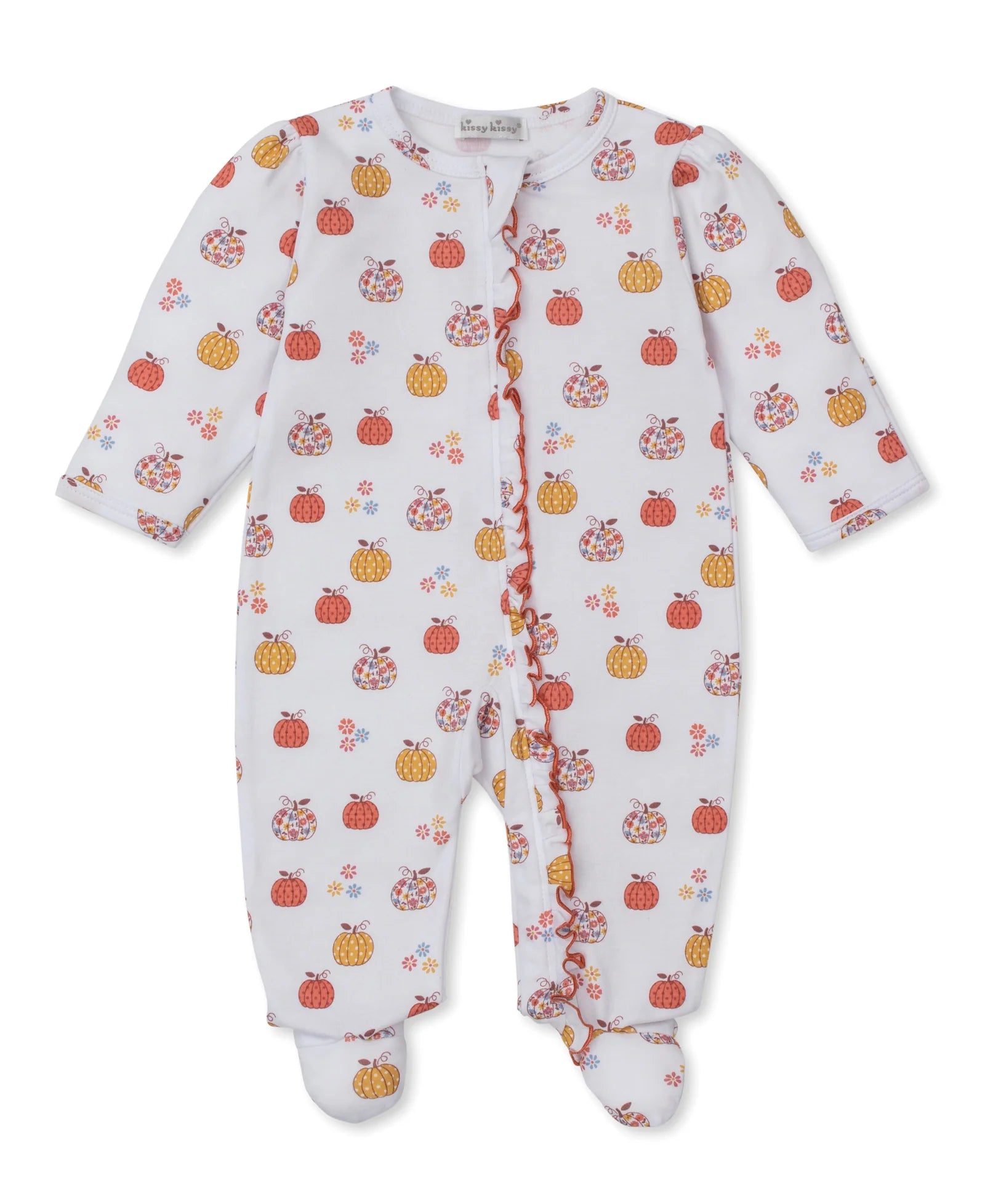 Playfully patterned, our cozy, patchwork pumpkin and floral print zippered footie for baby is made from the softest Pima cotton for ultimate comfort.