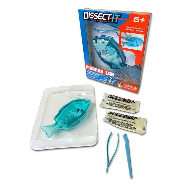 Includes – Dissect-It Piranha, instructions, a dissection table, and plastic tools needed for dissecting the piranha. In addition, you will receive 2 refill gel kits for more dissecting fun and better understanding each and every time you play and study!