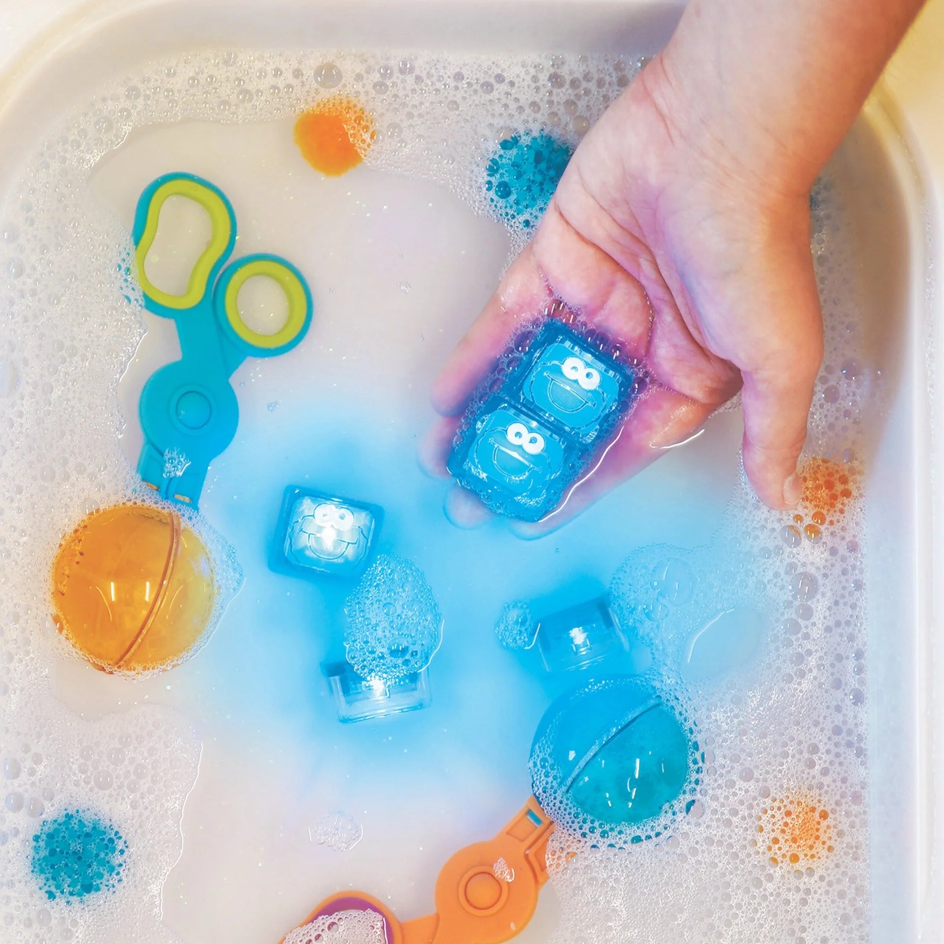 Sunny Days are right this way because everyone's favorite furry monsters are here to make playtime bright! Simply drop your Sesame Street x Glo Pals Light-Up Cubes in water, or insert one into a Character, and watch them light up like magic! Light-Up Cubes automatically turn off when removed from water.