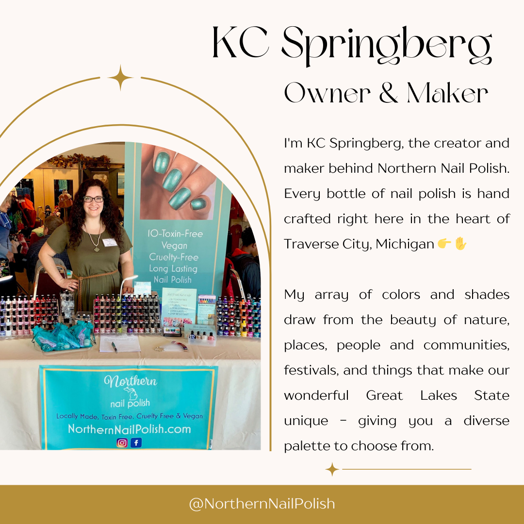 15mL standard large nail polish bottle size, State-neutral front branding labels for non-Michigan boutiques. "Sample/testers" are only for the optional, reusable swatch rings attached to the top of the bottles - not an additional bottle.