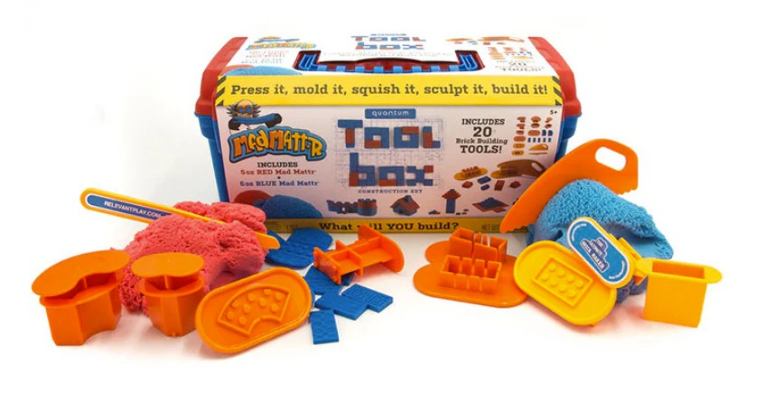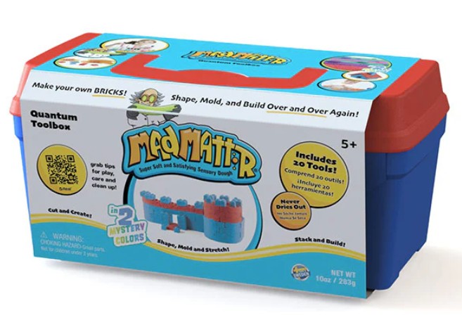 Kids of all ages will expand their Mad Mattr building prowess with the amazing Mad Mattr Tool Box! With 20 tools and two 5oz packs of Mad Mattr mystery colors included in the portable toolbox, there are endless ways to maximize your construction play. Press it, mold it, squish it, and sculpt it. What will you build?