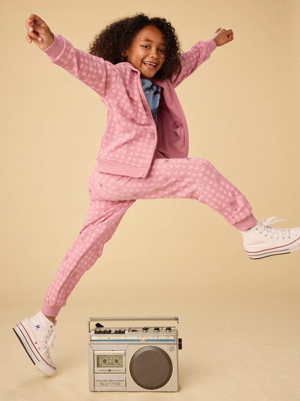 These joggers are designed to shine--literally. Featuring a shimmering star print that adds a touch of magic to every outfit, this full-length style is crafted from ultra-soft 100% cotton French terry. A relaxed fit, elastic waistband with functional interior drawcord, and on-seam pockets make them just right for everything from school to weekend exploring.