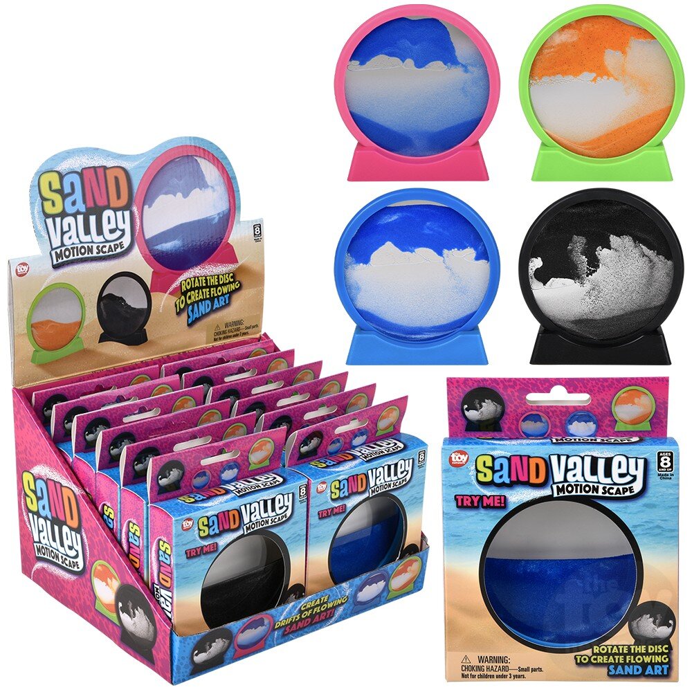 Tilt and shake these Sand Valley Scene Scapes to create unique designs. Great creative engagement activity. Assorted colors. Each piece is in a colored box.