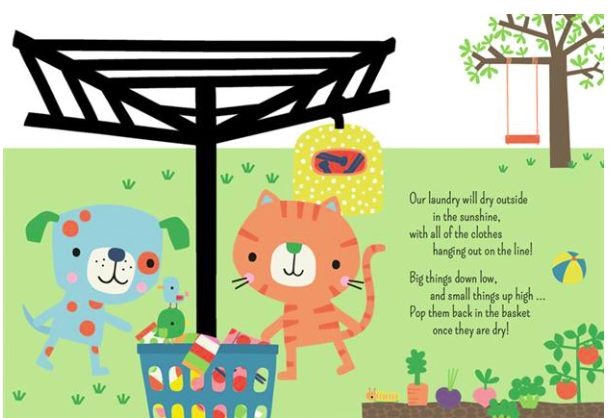 Empty the washing machine, hang out the clothes, then decide where to put them away while learning concepts, from colors, patterns, and shapes, to numbers and opposites. Develop fine motor skills using the ten fuzzy felt pieces that tuck away securely in an attached envelope for storage.