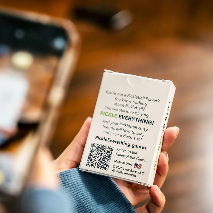 Every card offers a clue, and every answer starts with a “P”. The first one to shout out the answer followed by the word Pickle (yes, you must say pickle following your answer!), wins the card! Example: Pinocchio PICKLE. The GOLDEN RULE If you don't add "Pickle" to your answer, it's incorrect! No exceptions. Note: The clue reader is also the judge. They decide who responded first and correctly! The quickest thinker snags the card!