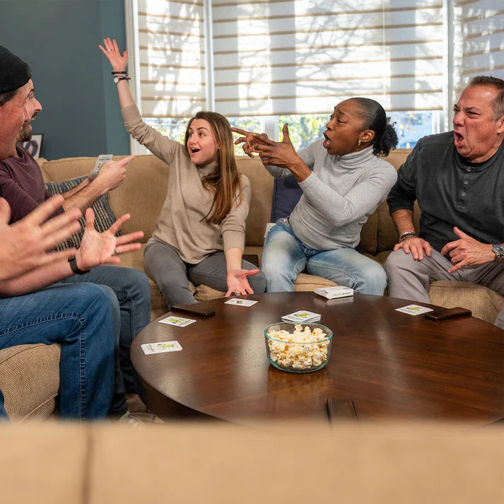 - Players take turns drawing cards but can only silently demonstrate the topic through charades!