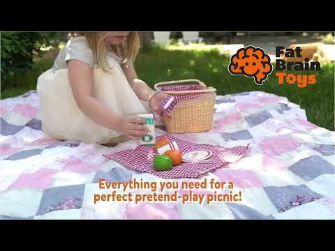 •Complete with wooden drink boxes, condiments, watermelon slices, cookies, and a basket with sturdy handles, the Pretendables Picnic Basket Set is a simply beautiful pretend-play experience.