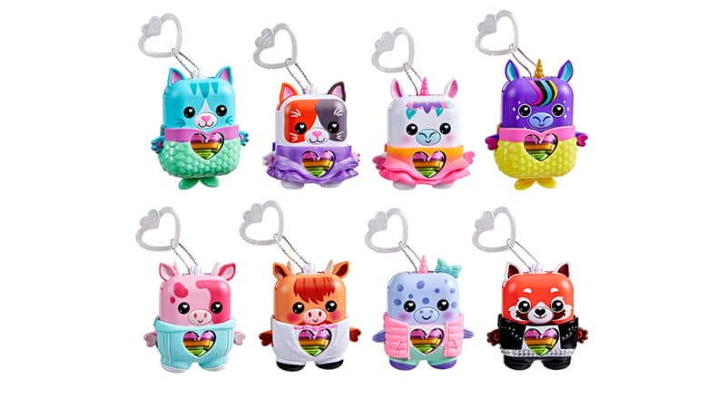 Unlock a world of fidgety, fashionable pocket-sized pets with Nano-mals. Nano-mals are electronic fidget toys and adorable mini companions that need your love! Each Nano-mals character has a color-changing heart meter that kids can fill in so many fun and satisfying ways. When the heart meter drops, she'll make sounds to let you know she needs care. If her heart meter is blue, she needs pets, so press her ears. If her heart is orange, she's hungry -- press her mouth to pretend feed her. Is her heart pink? Click her arms up and down to make her dance. What about purple? She wants to move! Flip, catch, or shake to fill her heart. She will celebrate her full heart with a song and colorful lights show. Give some extra flair with a textured snap-on teal outfit. Plus, she comes with an attached clip, so she makes a great kids keychain. Nano-mals are the perfect gift for kids who love animal toys, digital pets, and fidget toys.