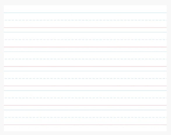 1-inch (2.54 cm) ruling, with red baseline, dotted midline, 5/16'' (8 mm) descender or skip line.