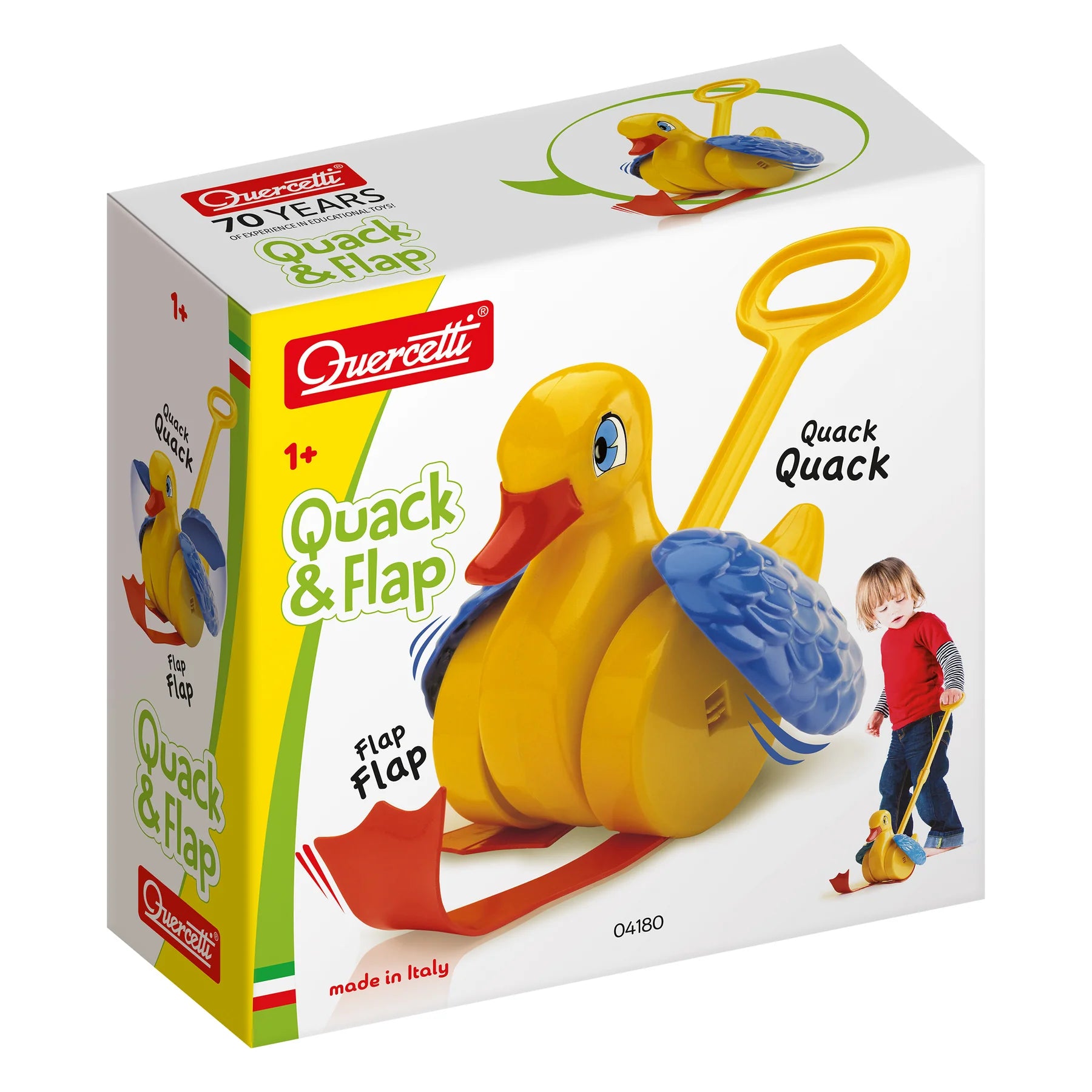 The Quack & Flap is a companion for the first walks of your child. Pushing it forward, it rhythmically moves the wings and its webbed legs.