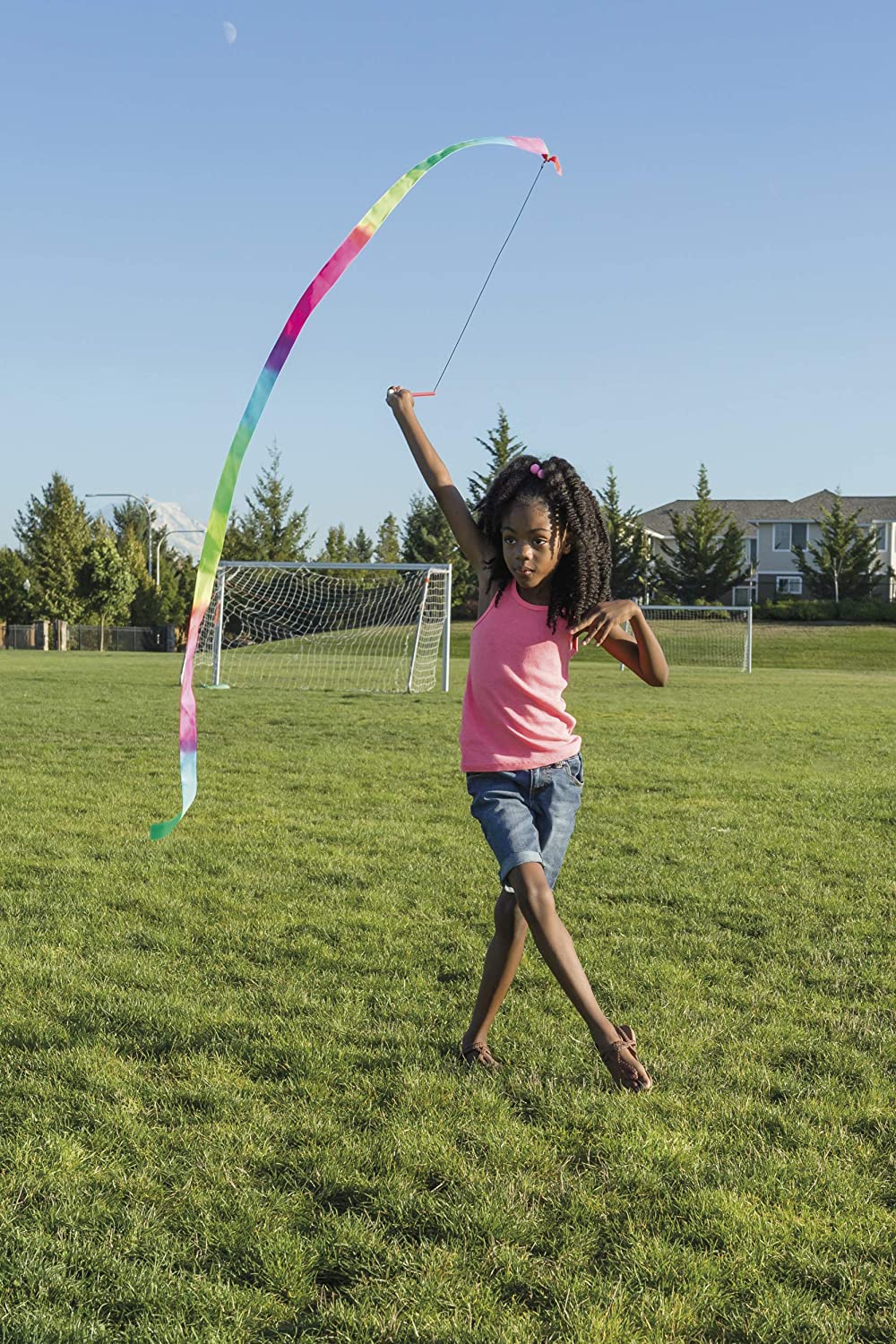 Pull the control cord to make different size loops and spirals. The Rainbow Stunt Streamer creates colorful patterns as kids twirl it. Age 5+