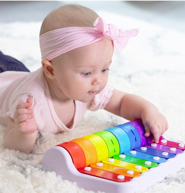 - Encourages fine motor skills, hand-eye coordination, early music learning
