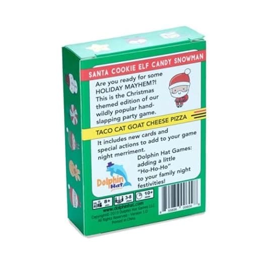 - Same gameplay but chant “Santa, Cookie, Elf, Candy Snowman” instead of “Taco, Cat, Goat, Cheese, Pizza”