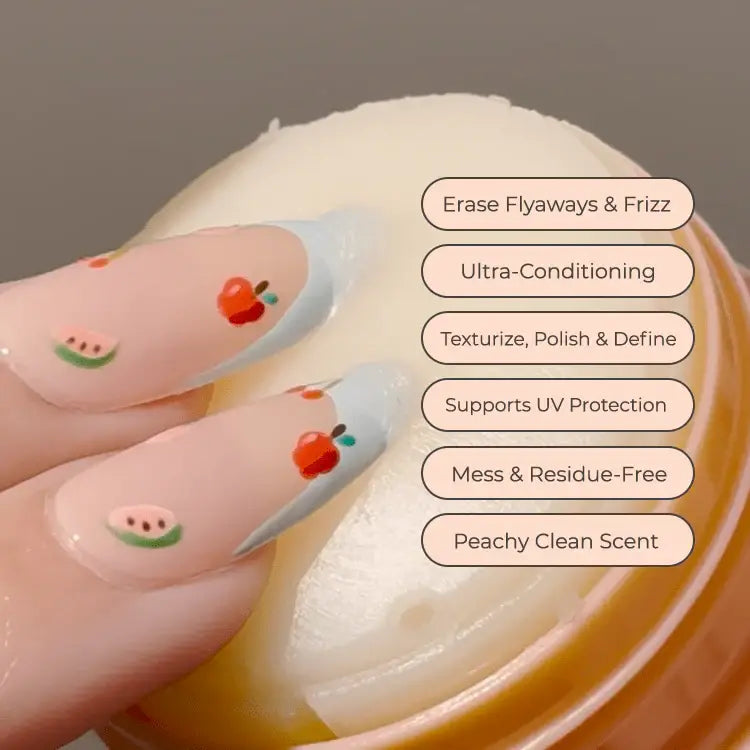 Our mess-free hair wax stick smooths flyaways and frizz for sleek, fresh hair all day—without the sticky finish or build-up. Ideal for adding texture, control, and definition, it features a blend of soothing superfoods and a medium-hold formula. Plus, Zinc Oxide shields your hair from UV damage, leaving it soft, supple, and peachy clean with a semi-matte finish.