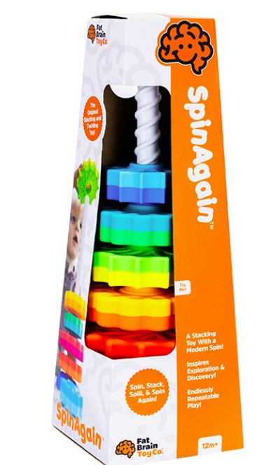 It's a stacking toy with a spin—literally!