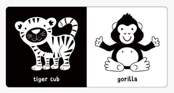 - From penguin chicks, to piglets, to puppies, adorable high-contrast images of baby animals will keep Baby engaged.