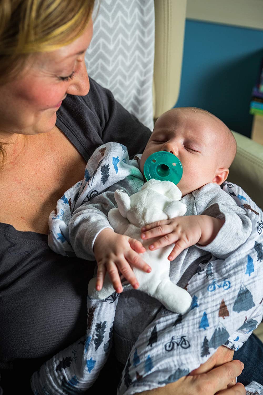 - SEWN-IN PACIFIER: Latex-free, medical grade silicone Soothie pacifier recommended for babies 0-6 months and/or babies without teeth; BPA, PVC and Phthalate free